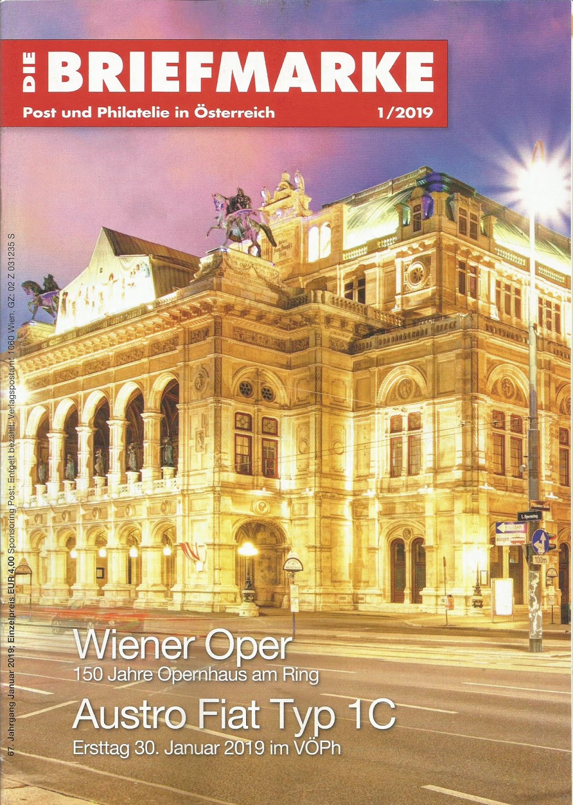 A Ópera de Viena está a celebrar os 150 anos de existência, e é com essa imagem do imponente edifício que aparece o número um de «Die Briefmarke - Post und Philatelie in Österreich», publicação de Janeiro, órgão oficial da Federação Filatélica da Áustria - "Verband Österreichischer Philatelistenvereine", federação que vai lançar nas suas instalações, em Viena, a emissão de um selo no dia 30 de Janeiro, que é o "Austro Fiat Typ 1C", com edição de dois sobrescritos comemorativos. Uma notícia que destacam nesta edição, é da realização em Outubro, em Portugal, da Exposição Nacional de Filatelia, em Viana do Castelo, com a participação de filatelistas dos países do Grupo Alpen Adria, que inclui a participação de coleccionadores austríacos. A Ópera de Viena é tema de um artigo de Peter Riedl e Reinhard K. Schneider, ilustrado com vários selos e postais lançados ao longo dos anos, mas outros artigos de história postal e filatelia temática têm aqui o seu destaque. As actividades filatélicas das associações austríacas, o contacto com os jovens, e as novidades filatélicas dos Correios da Áustria, completam esta edição.